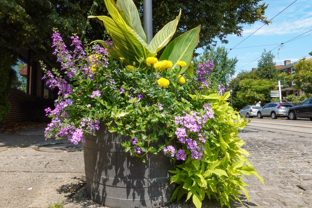 Our volunteers and professional staff live by our organization’s motto: We flower the Avenue. We plant and maintain flowers and other plants in nearly 200 baskets, boxes, barrels, and urns; in pocket parks (including Cliff Park, Memorial Park, and Peace Park); in parking lots; and at welcome signs on and around the Avenue.