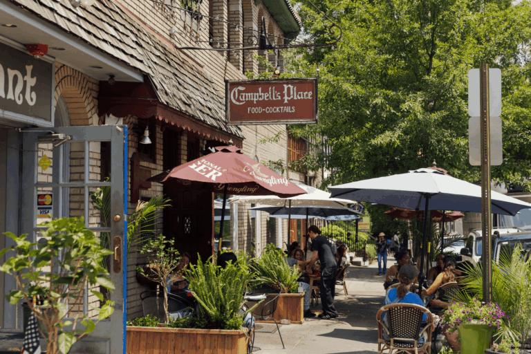 For those arriving by car, there is ample metered street parking and several public parking lots conveniently located near shopping and dining areas. Once you’re here, you’ll find that the neighborhood is very walkable, with wide sidewalks, benches, and plenty of places to pause and take in the scenery.
