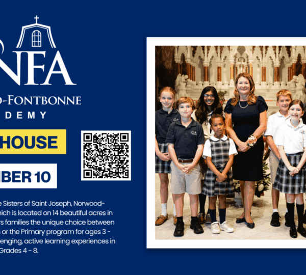 Founded in 1920 by the Sisters of Saint Joseph, Norwood-Fontbonne Academy, which is located on 14 beautiful acres in nearby Chestnut Hill, offers families the unique choice between the Montessori program or the Primary program for ages 3 – Grade 3, followed by challenging, active learning experiences in Grades 4 – 8. Home to dozens of clubs and extracurricular activities, NFA offers its students the chance to engage their learning, passions, and curiosity well beyond the classroom. Through the 11-year journey at NFA, we position our students to enter the wider world aware of their own worth and their power as a positive force for good.