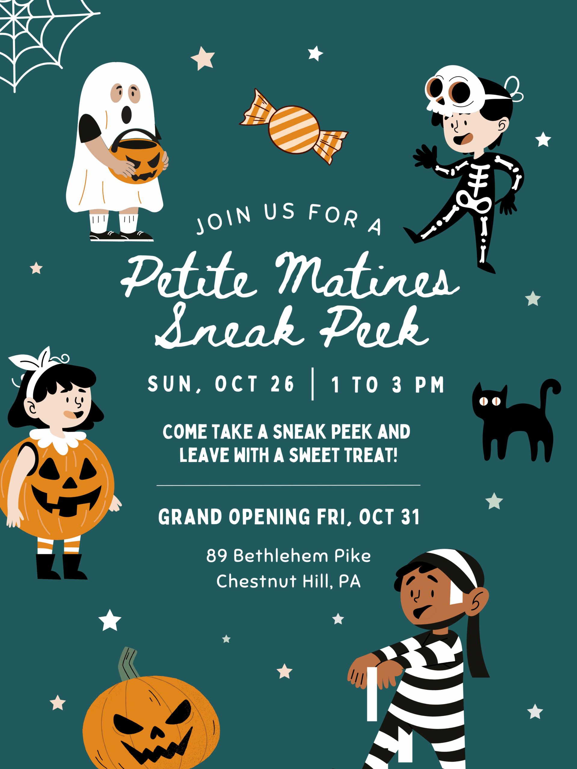 We’re giving Chestnut Hill a first look at our new café during the Trick-or-Treat Stroll on Sunday, October 26 from 1 to 3 pm! Bring the family, stop in for free candy and chocolate milk, and get a glimpse before our grand opening celebration on Friday, October 31.
